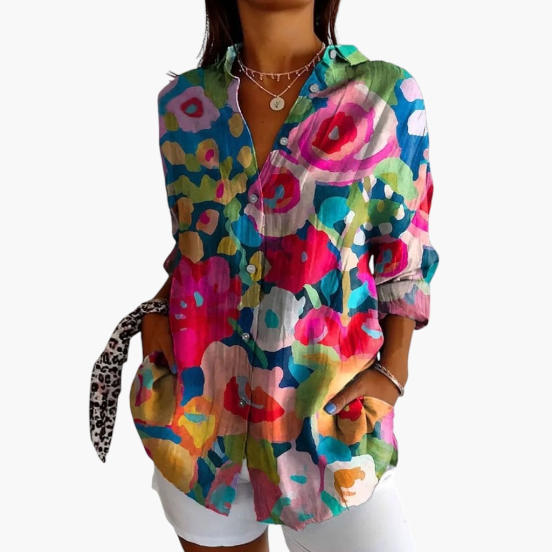 Imprimare florală timeless: Imprimarea elegantă cu flori în mai multe culori conferă bluzei un aer vintage care rămâne întotdeauna în tendințe.