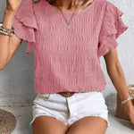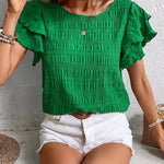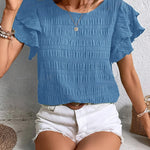 Bluza Isabella combină un design lejer și stilat cu detalii feminine. Volanele delicate de pe mâneci oferă un efect jucăuș, iar plisele subtile asigură o croială care flatează. Perfectă pentru o zi casual sau un look chic de vară!