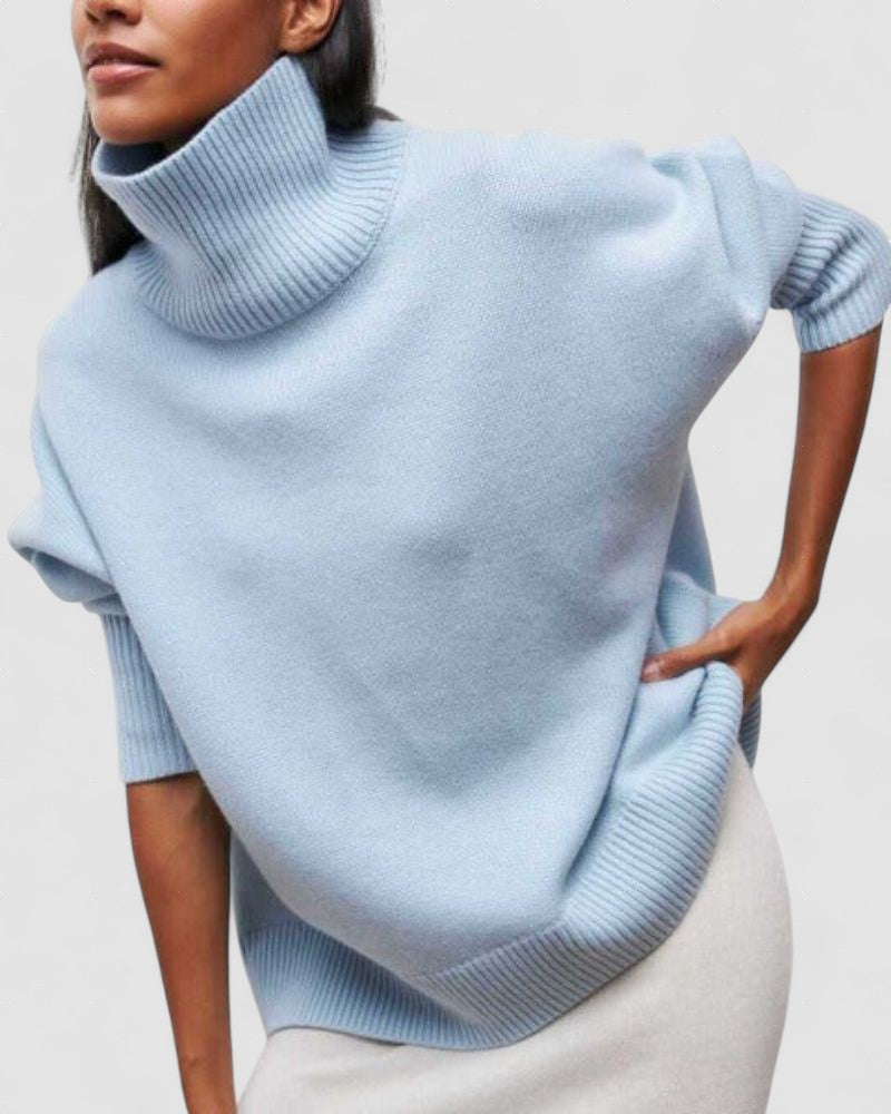 Descoperă EVY, puloverul cu guler înalt care combină armonios confortul plăcut cu un design modern. Ideal pentru zilele răcoroase, acest pulover te învăluie într-o stare de bine datorită croiului lejer și materialului moale, oferind libertate de mișcare și o senzație de căldură fără compromisuri. Gulerul amplu adaugă o notă elegantă și practică, perfectă pentru a te proteja de frig, păstrând totodată un aspect sofisticat.