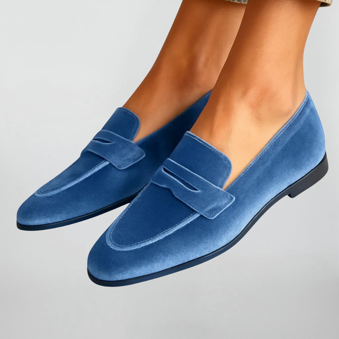 Trăiește perfectă armonie între stil și confort cu mocassinii noștri eleganți, care se remarcă prin finisajul lor moale din catifea și un design clasic cu fante. Forma lor ușor rotunjită și talpa plată îi fac partenerul ideal pentru ziua de zi.